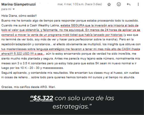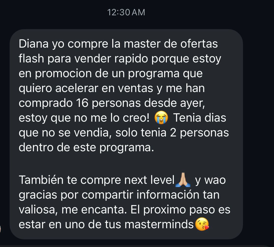 Diana ha escalado su negocio a más de 18M de dólares con tan solo una audiencia de 16 mil personas y una base de datos de 22k especializándose en la venta de ofertas LOW, MEDIUM Y HIGH TICKET .