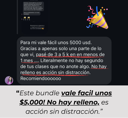 AUNQUE NO HAY SOPORTE PRIVADO, CON DIANA DENTRO DE ESTE BUNDLE, SI NECESITAS ALGUN TIPO DE MENTORIA 1:1 ENVIANOS UN MENSAJE A ASISTENTE.DIANAGVARA@GMAIL Y ESTAREMOS FELICES DE AYUDARTE A ESCOGER UN PAQUETE O RESOLVER CUALQUIER PROBLEMA CON TU ACCESO.