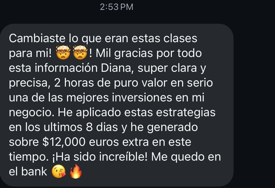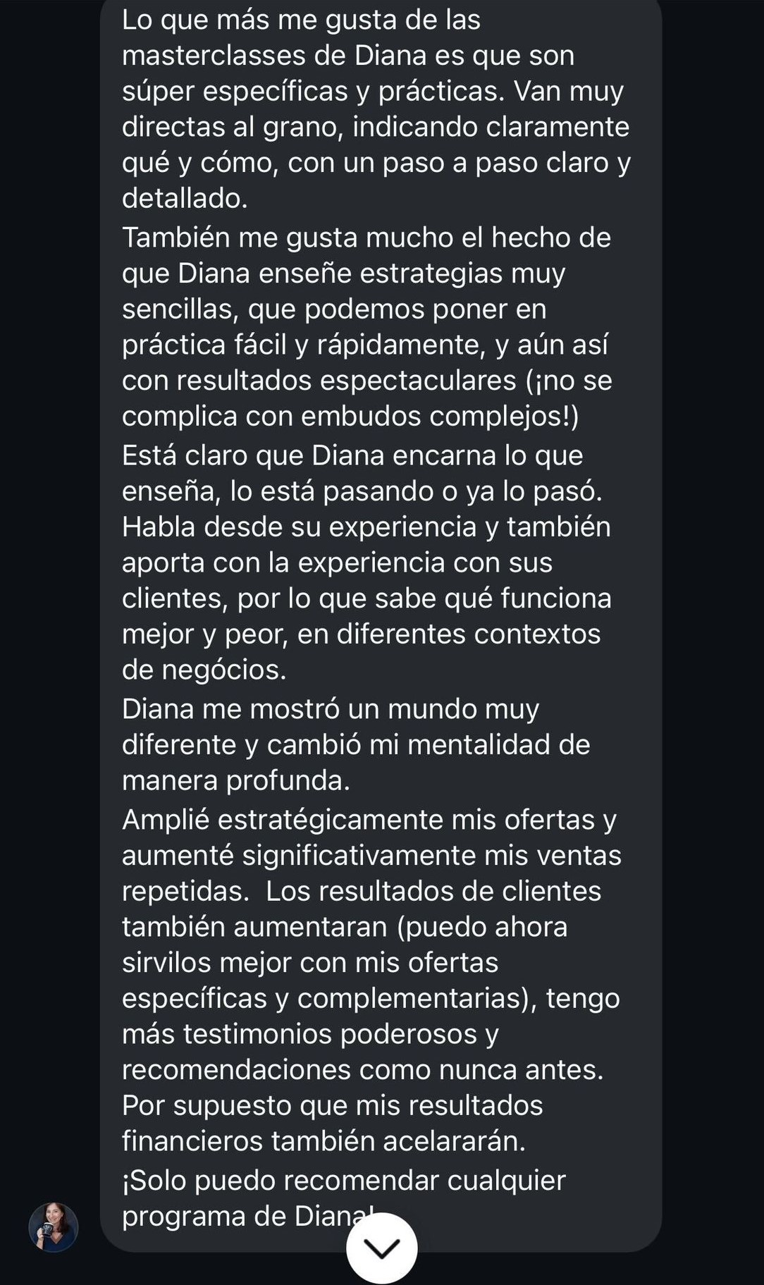 Diana ha creado procesos de CONVERSIÓN MASIVA que la han traído a sostener resultados que han volado su cabeza y la de muchos.