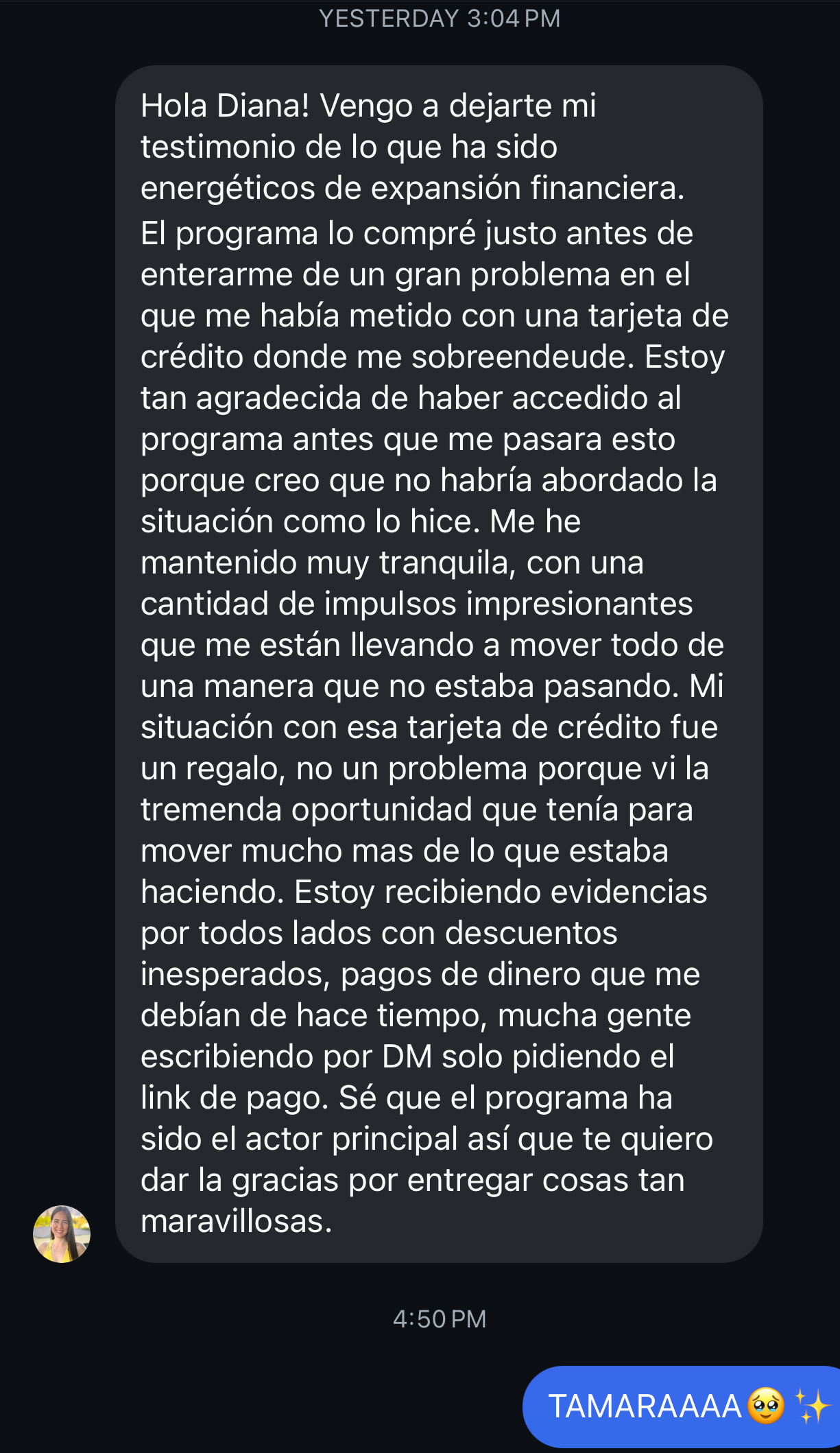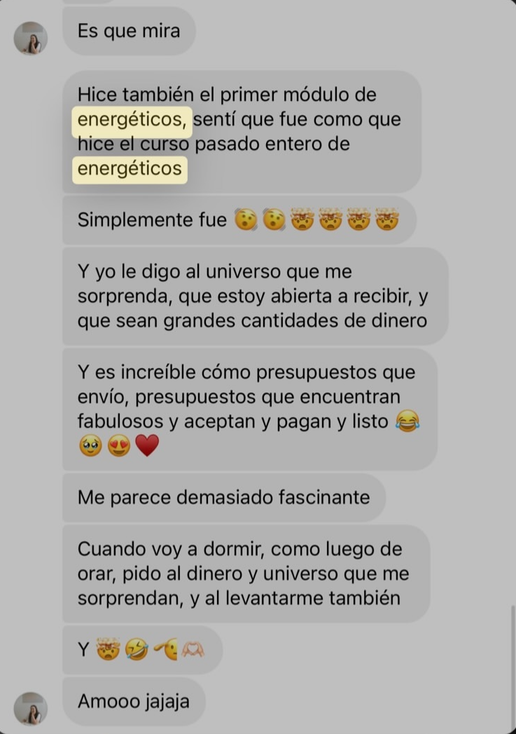 Hay un entendimiento de ciertos códigos energéticos que he logrado desbloquear y activar para mí, hay un trabajo de identidad que me ha permitido colapsar el tiempo con la creacion de cantidades masivas de dinero.